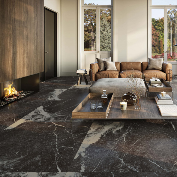À la recherche d’un carrelage céramique pour le sol qui respire l’élégance et le luxe ? Alors le Century Contact Vogue est fait pour vous ! La base noir mat nervurée donne du caractère à votre sol, qui est mis en valeur par les nuances naturelles. Le traitement naturel de la surface reproduit l’essence fondamentale du matériau et souligne les qualités esthétiques, comme la couleur, le veinage et les textures de cette imitation pierre naturelle. Les bords rectifiés donnent un joint fin, quasiment invisible, ce qui fait que toute l’attention va au design réaliste de la surface de ce carrelage de 120 x 120 cm.